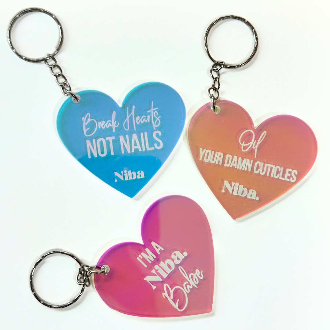 Jazz up your keys with our heart shaped NIBA Keyrings!